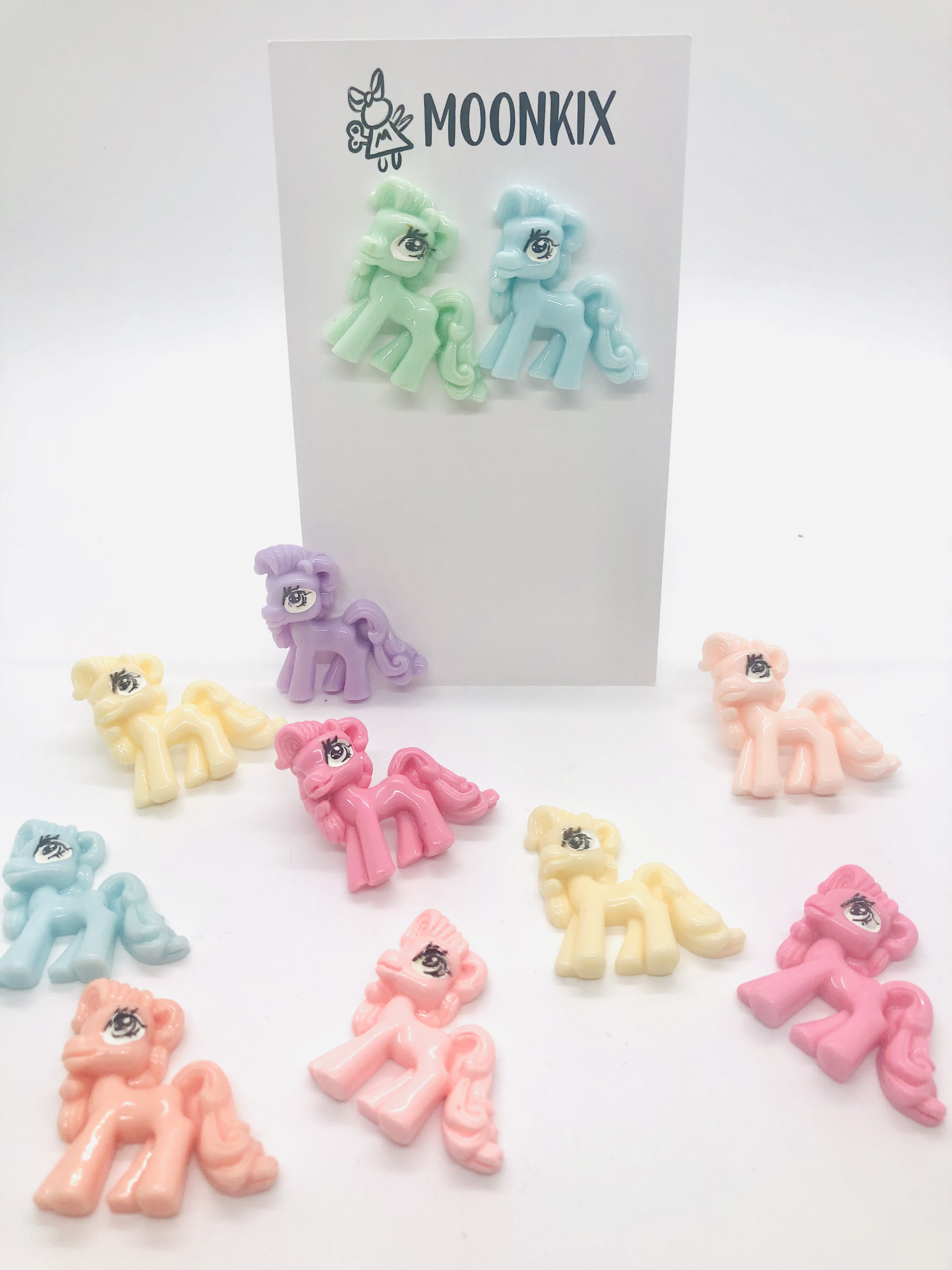 Our multi-colored 35mm "homies" are perfect for all ends of the spectrum -- childhood nostalgia or the Brony phenomenon! These flatback cabochons are made of resin and secured with surgical steel posts.