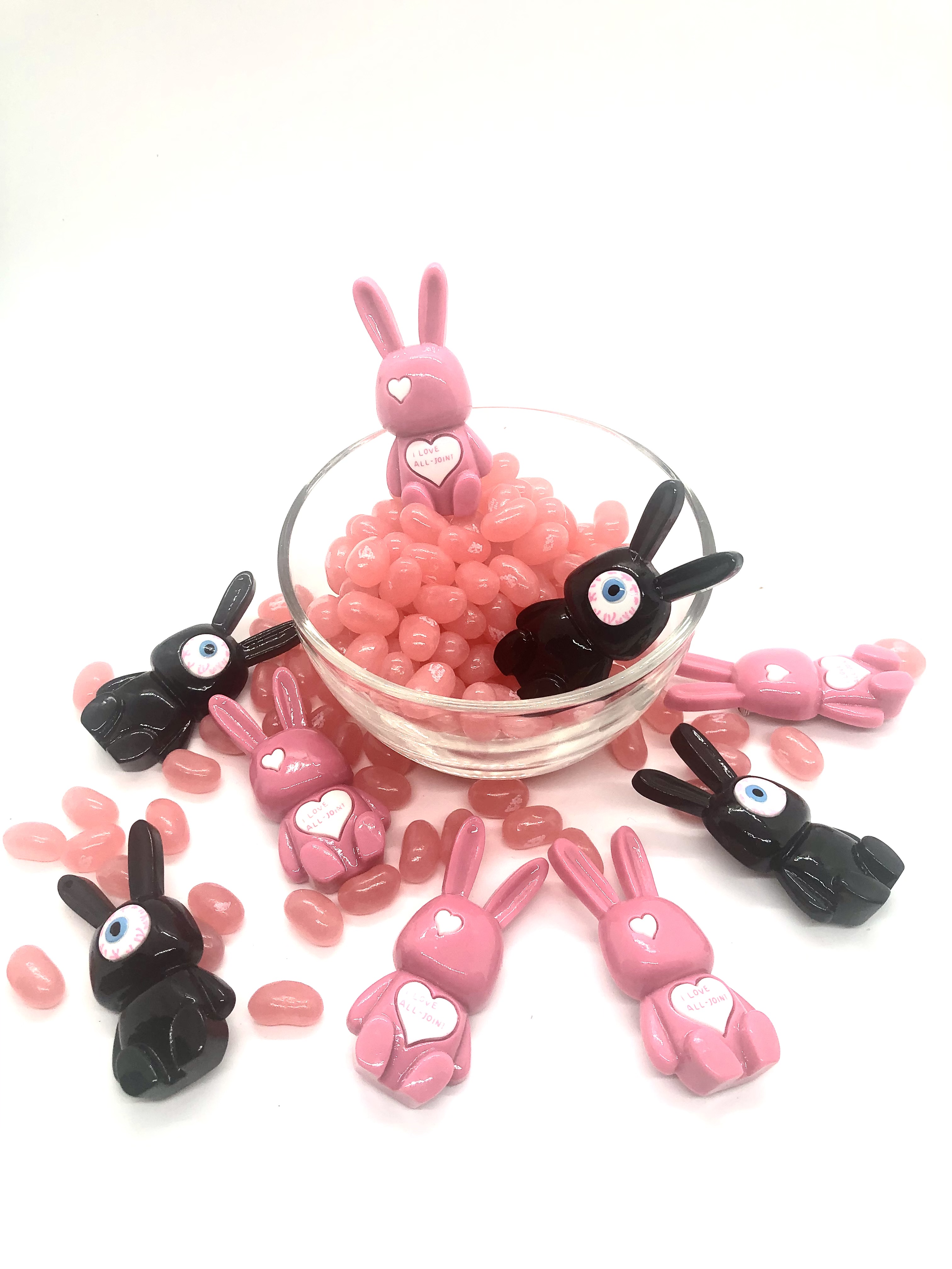 Our "Rabidtz" pins are a little lovely and a little . . . ummmm . . . strange. Each resin slime cabochon measures 30x61mm and features a bar pin backing. Warning: Rabbits aren't always sweet.
