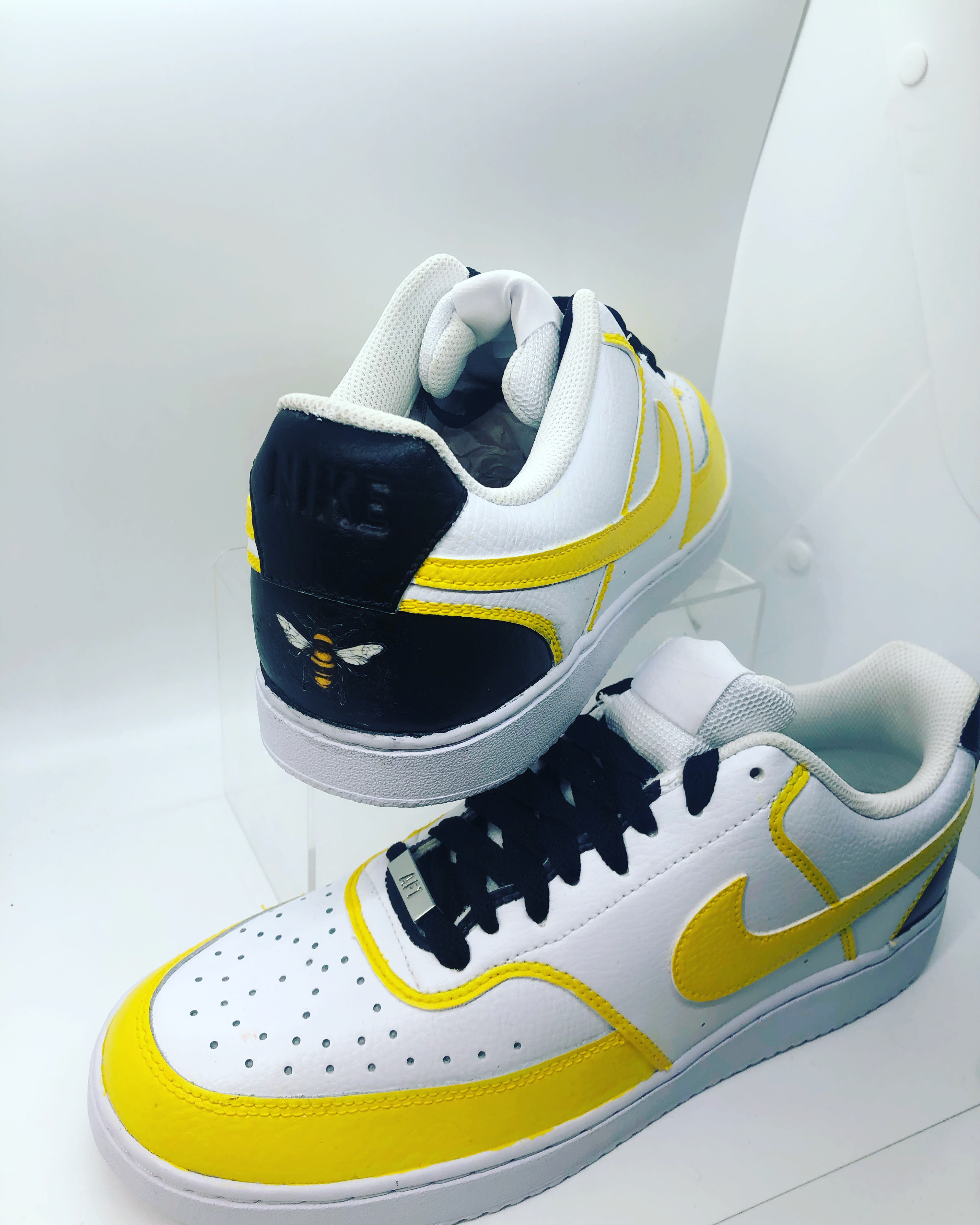 Can we get a Suuuuuu?! Our Wu-Tang inspired custom kix feature black and yellow accents with Killa Beez imagery. Shipping times depend on iavailable inventory. Featured: Nike Court Vision Low